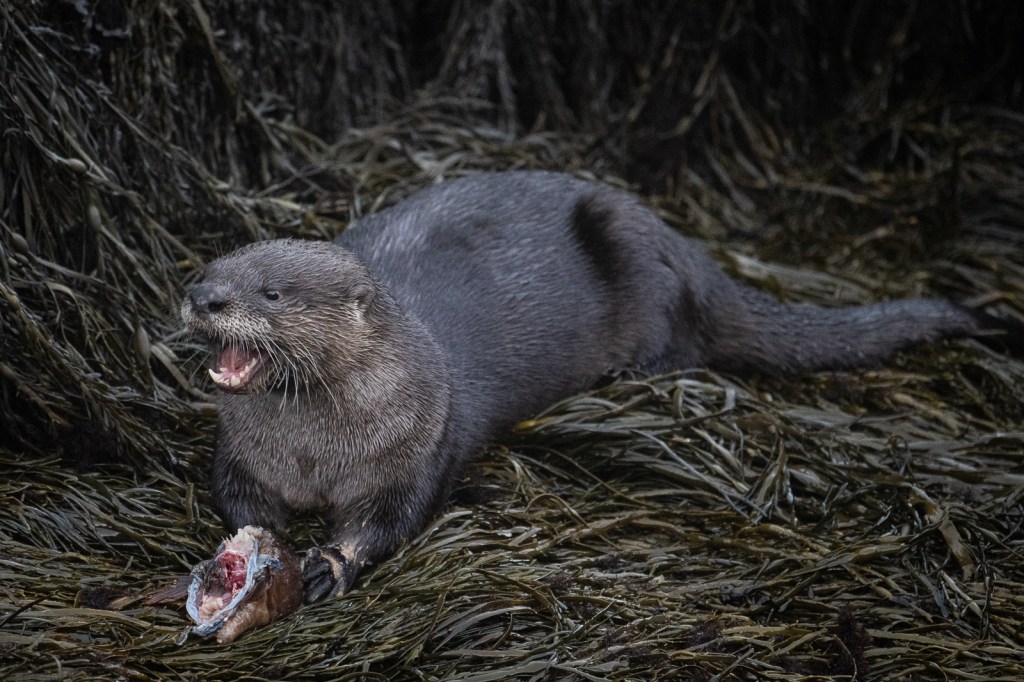 A few days later, I got my proof. We visited the Ocean Path for one last evening of photography. We wandered the boulders, letting the day fade, and just as we were about to head back, spotted movement in the surf. Another seal? No, that’s the nose of an otter! Not one, but two! The second dragging a fish nearly as big as itself. The otters devoured the fish and groomed in the seaweed, giving us a front row seat before engaging in some potential mating behavior and disappearing into the rocks.